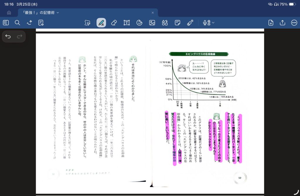 Goodnotesに取り込んで、そこにマーキングしているものです。